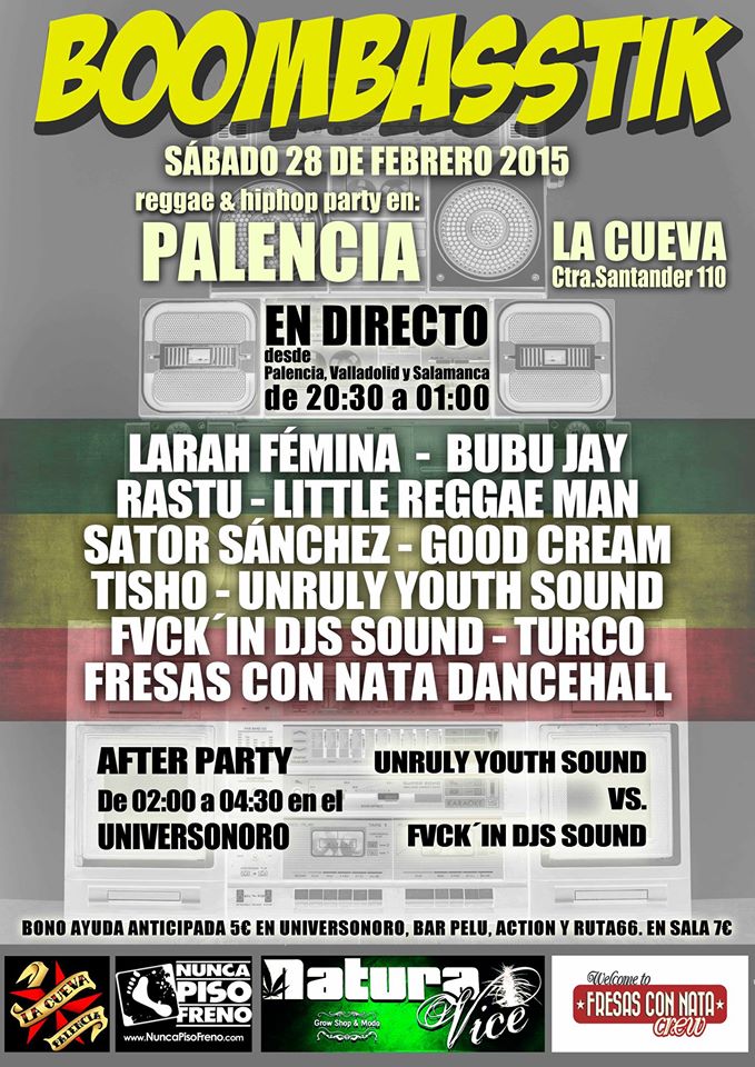 Artistas: Larah Fémina, Sator Sánchez, Tisho, Bubu Jay, Rastu, LittleReggaeMan, Good Cream, Turco, Unruly Youth Sound, Fuck´in Djs Sound, Fresas con Nata Dancehall